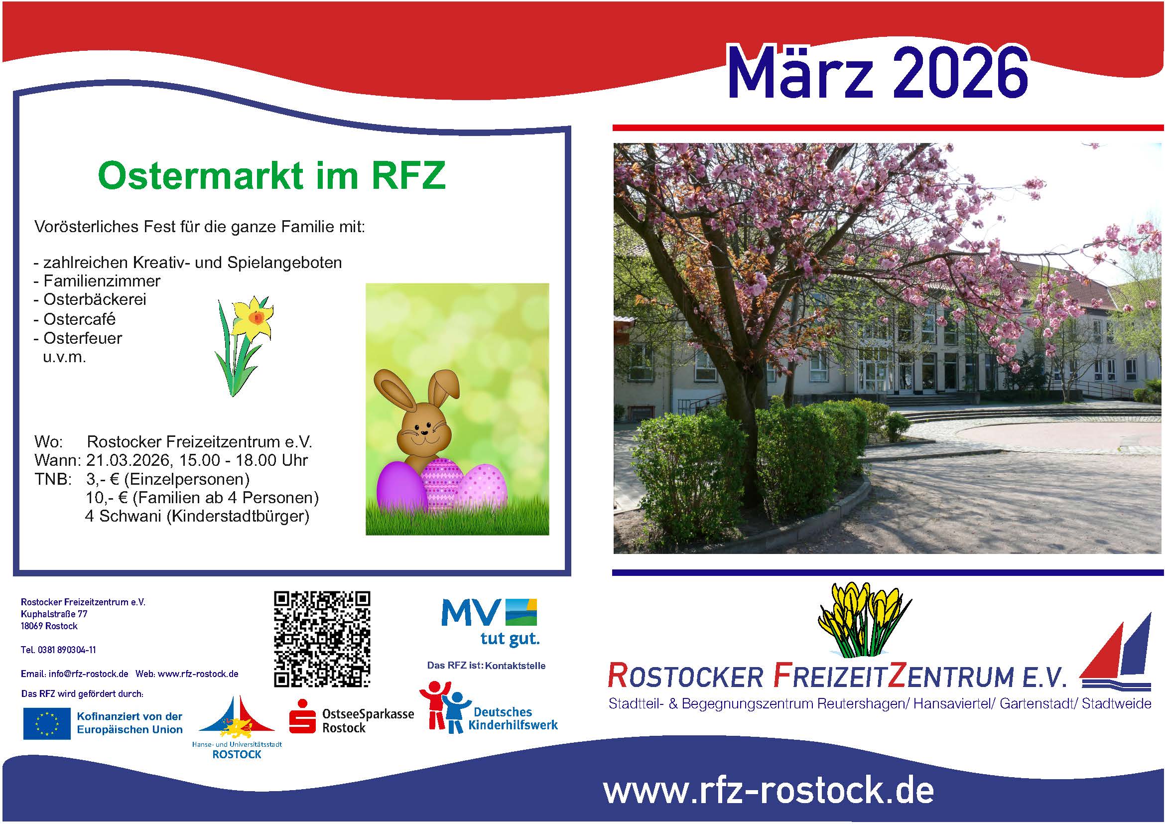 Das Rostocker Freizeitzentrum ist eine der traditionsreichsten sozialen Einrichtungen in der Hanse- und Universitätsstadt Rostock. Hier haben seit Anfang der 90er Jahre vielfältigste Angebote der Sozialen Arbeit, der Kultur und des Sports ein Zuhause gefunden. Insbesondere als Stadtteil- und Begegnungszentrum für Reutershagen, das Hansaviertel, die Gartenstadt und Stadtweide ist das RFZ für viele Altersgruppen ein wichtiger Anlaufpunkt für soziale und gesellschaftliche Aktivitäten, Projekte, Ideen, Initiativen und Vereine sowie ein Ort der Kommunikation und des Miteinanders.Träger des RFZ ist der Rostocker Freizeitzentrum e.V.